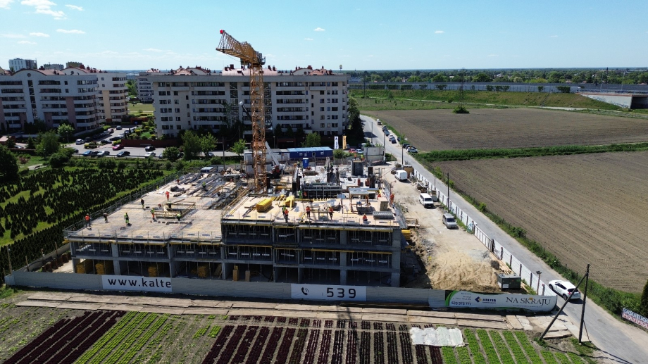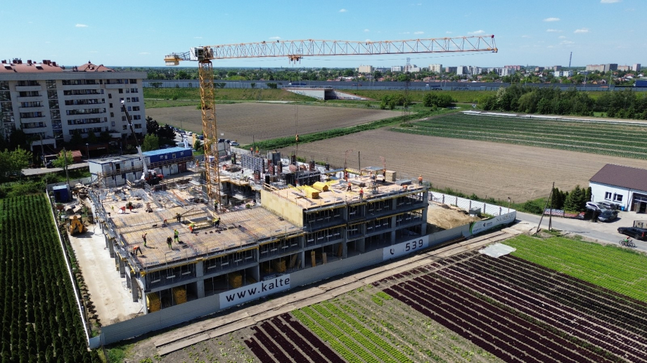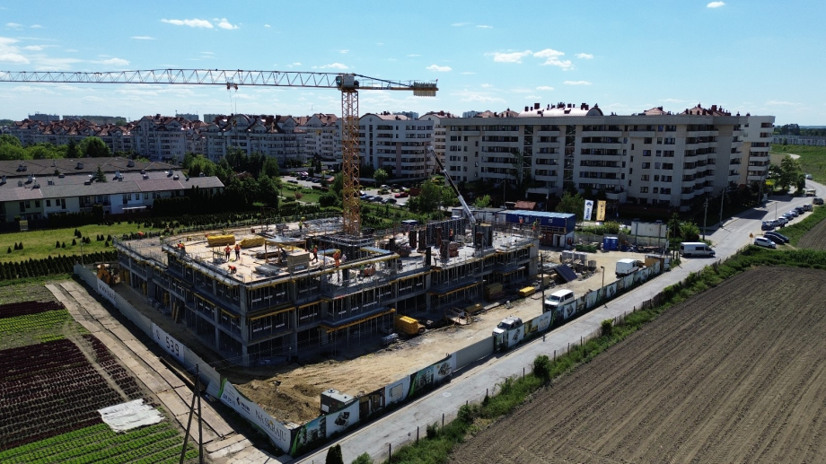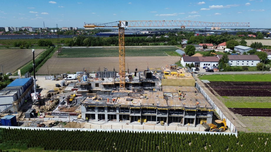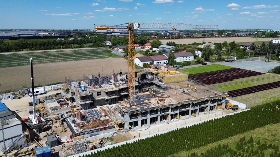 Kontynuujemy prace przy konstrukcji budynku. Jesteśmy na kondygnacji +3. Rozpoczynamy roboty murowe.
