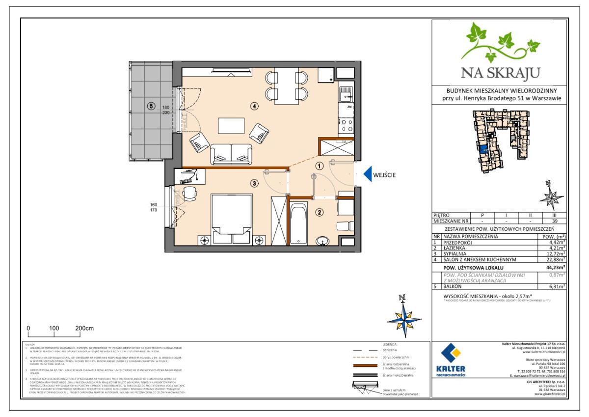 Metraż 44.29 m2
